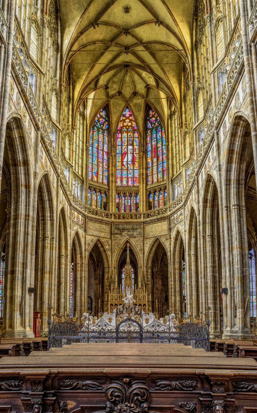 Der Veitsdom mit beeindruckend detaillierten Glasfenstern